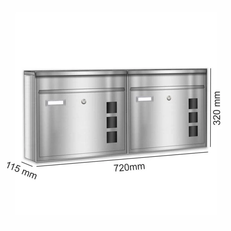 2er Edelstahl Briefkasten Anlage für Außen Wand Design Postkasten