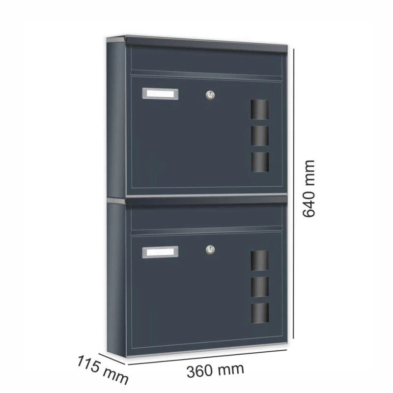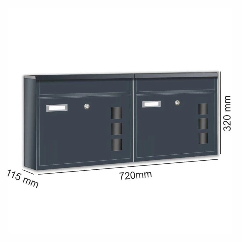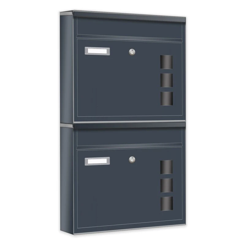 2er Briefkasten Anlage RAL 7016 anthrazit grau für Außen Wand Design Postkasten