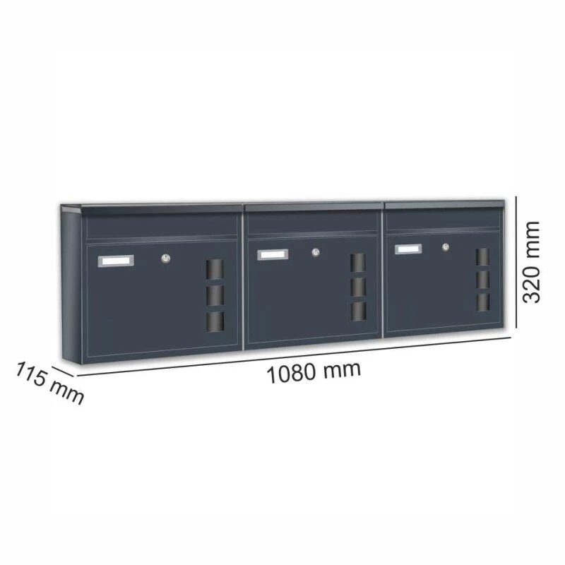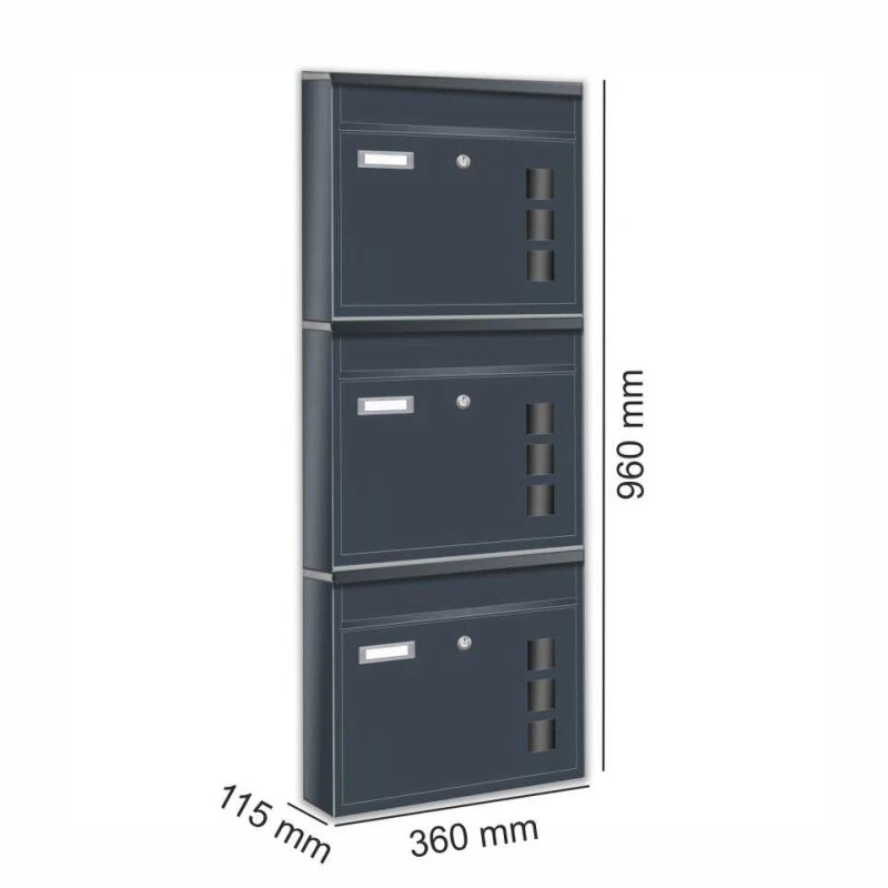 3er Briefkasten Anlage RAL 7016 anthrazit grau für Außen Wand Design Postkasten