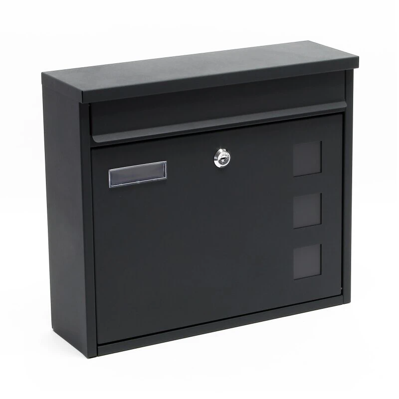 Die Briefkastenanlage besteht aus pulverbeschichtetem Edelstahl in zeitlos schlichter Optik. Der Briefkasten verfügt über einen großen Briefschlitz, ein Namensschildfenster, ist abschließbar und wird mit zwei Schlüsseln geliefert. Montagematerial ist ebenfalls im Lieferumfang enthalten.