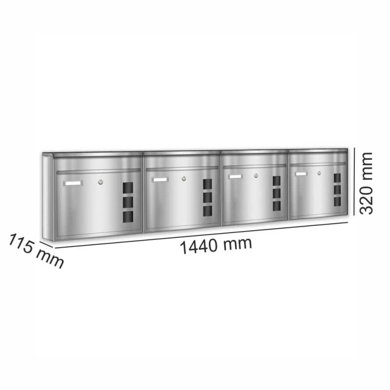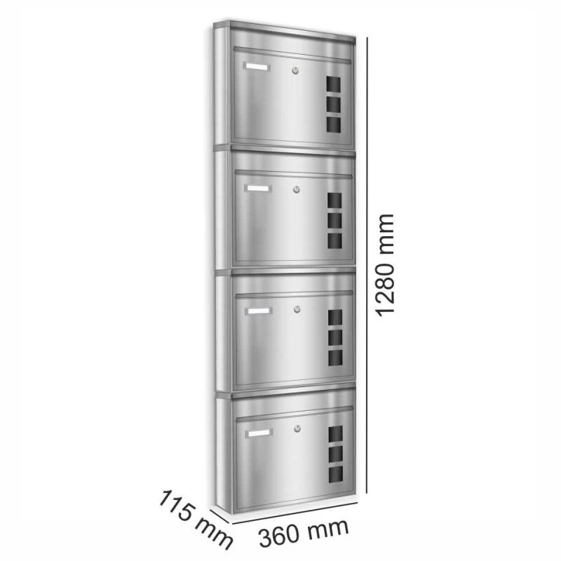 4er Edelstahl Briefkasten Anlage für Außen Wand Design Postkasten