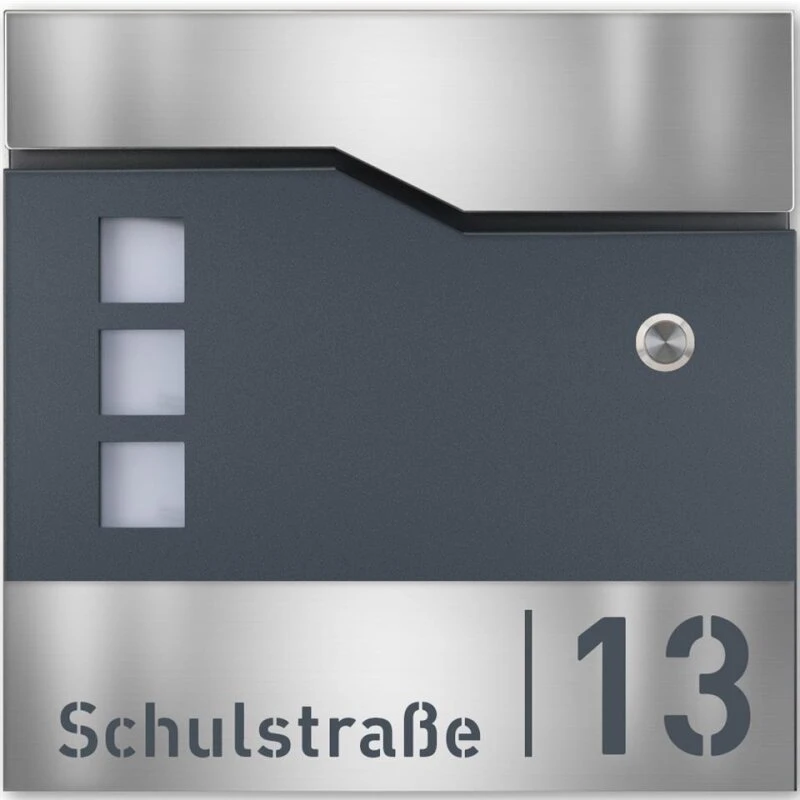 Designer Briefkasten mit FUNKKLINGEL ANTHRAZIT mit Edelstahl Laser Namensblende