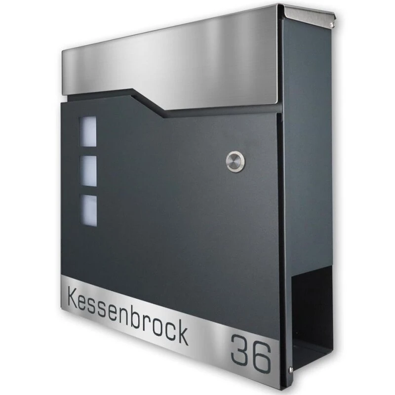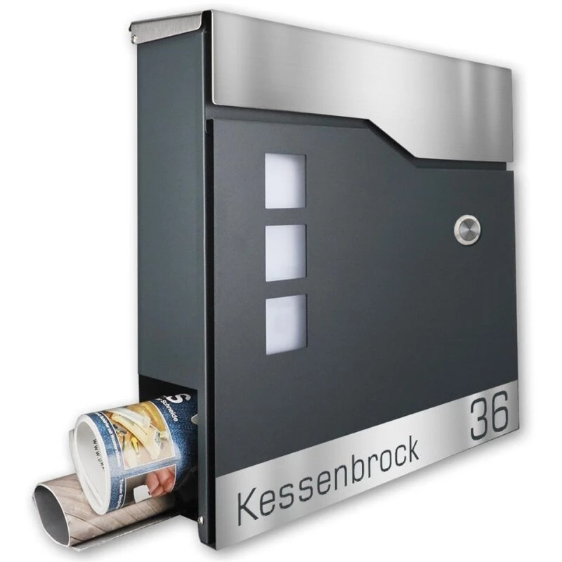 Designer Funk-Briefkasten aus galvanisiertem Stahl mit pulverbeschichteter Oberfläche in zeitlos schicker Optik. Der Briefkasten verfügt über einen großen Briefschlitz, so dass auch größere Sendungen eingeworfen werden können. Montage-Material ist ebenfalls im Lieferumfang enthalten. Weiter befindet sich auf der unteren Seite ein Zeitungsfach, so dass Zeitungen nicht mehr vor der Haustüre im Nassen abgelegt werden müssen, sondern einen trockenen Platz haben, bis sie ins Haus geholt werden.