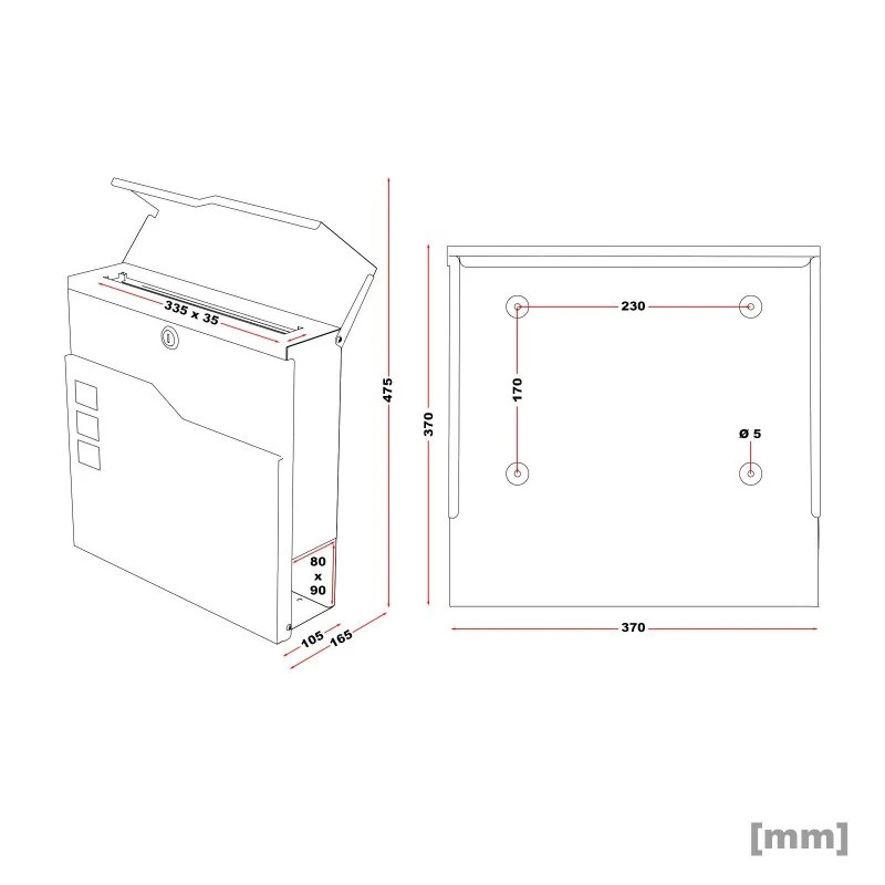 Maße Briefkasten: 37 x 37 x 10,5 cm