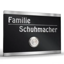 Hochwertig, modern und edel erscheint diese Haustürklingel an Ihrer Fassade. In der Mitte der Platte befindet sich ein extras großer Klingeltaster mit 35mm Ø.