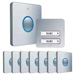 Funk-Türglocken-Set Funkklingel für 2-Familien-Haus silber konfigurierbar