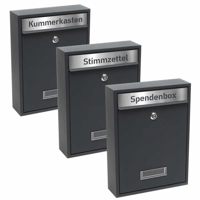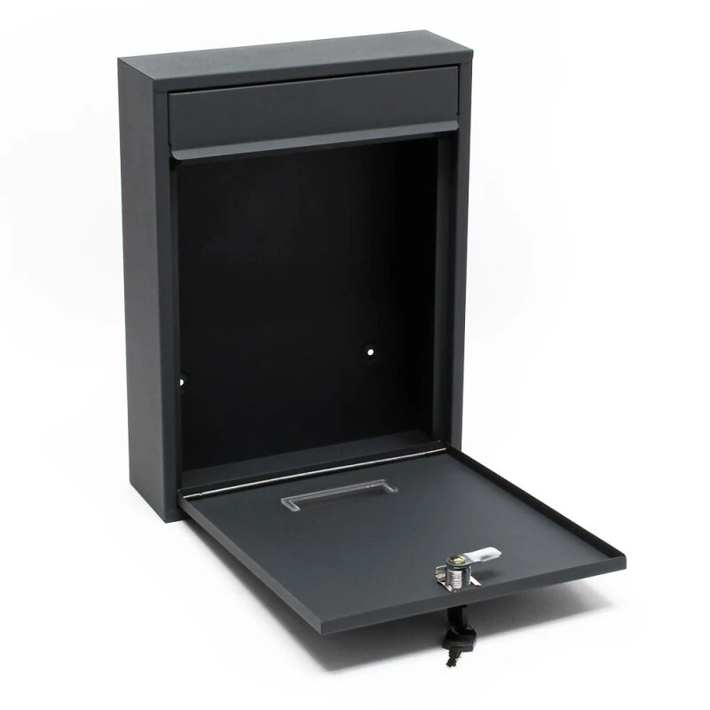 Dieser Universalkasten besteht aus beschichtetem Stahl – Anthrazit grau pulverbeschichtet RAL 7016 Feinstruktur – Qualitätsprodukt – Wetterfest. Die Einwurfklappe ist mit einer Geräuschdämmung ausgestattet. Die Box verfügt zudem über einen großen Briefschlitz, ein Namensschildfenster / oder auch Sichtfenster um einen Befüllungszustand feststellen zu können. Die vordere Entnahmeklappe ist abschließbar.