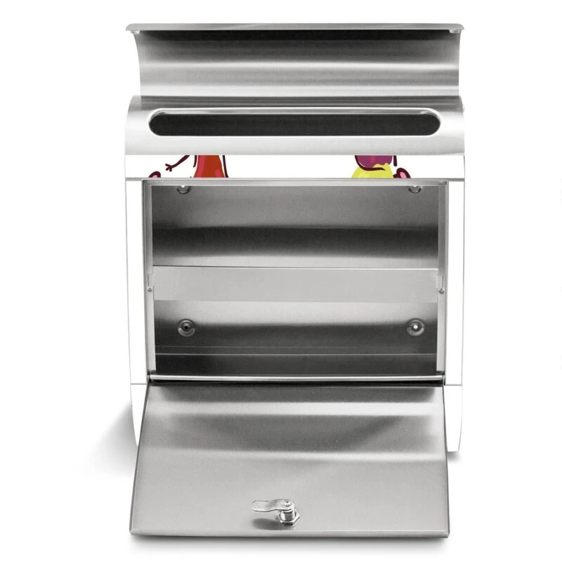 Die Größe bietet genügend Platz für Sendungen aller Art, das hochwertige Edelstahl ist rostfrei und die Motivfolie absolut wetterfest.