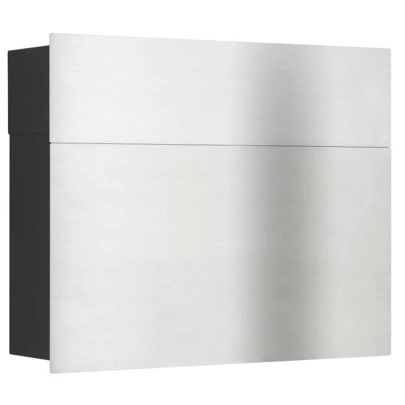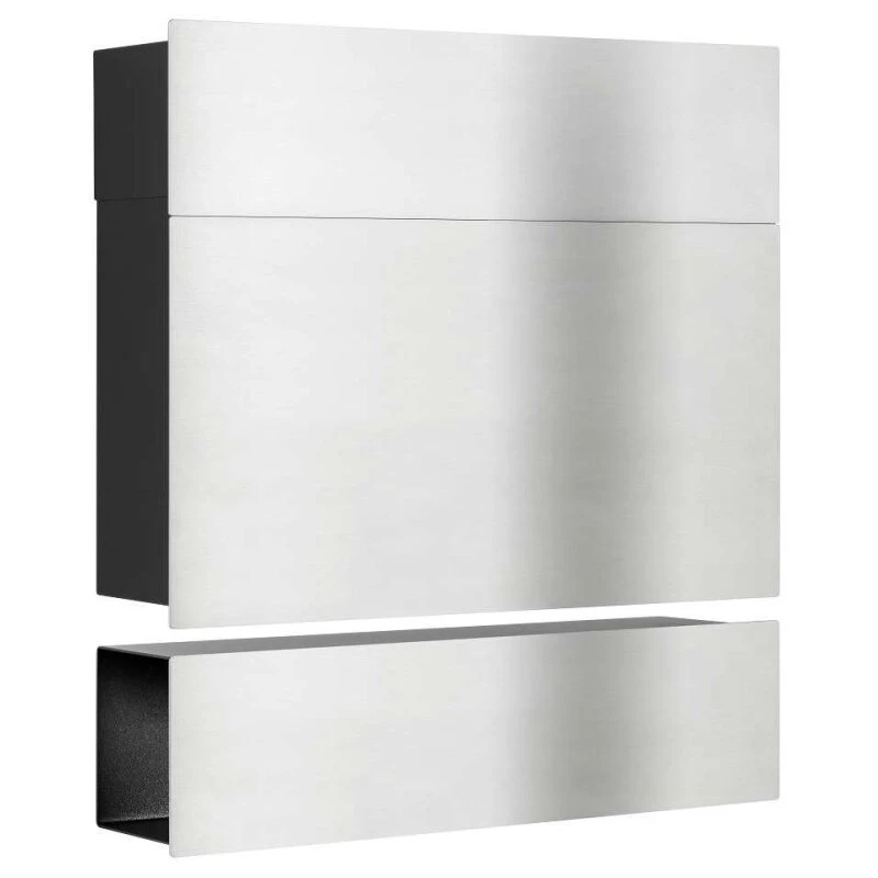 Premium Briefkasten Front Edelstahl – Korpus schwarz mit Zeitungsfach