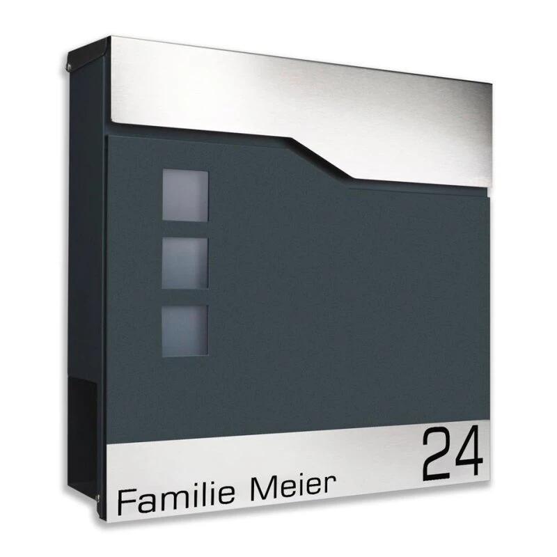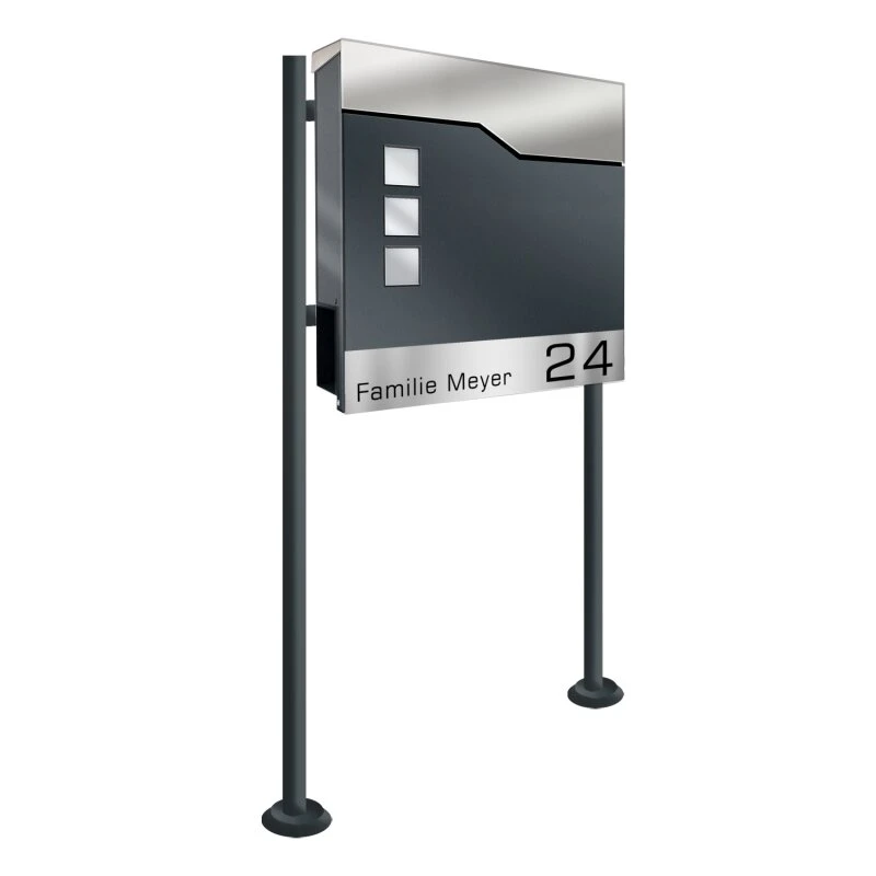 Standbriefkasten Set Toppy1 in ANTHRAZIT GRAU RAL 7016 pulverbeschichtet mit Edelstahlbeschriftungsapplikation