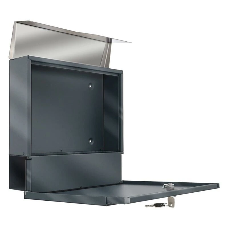 Designer Briefkasten aus galvanisiertem Stahl mit pulverbeschichteter Oberfläche in zeitlos schicker Optik. Der Briefkasten verfügt über einen großen Briefschlitz, so dass auch größere Sendungen eingeworfen werden können. Montage-Material ist ebenfalls im Lieferumfang enthalten. Weiter befindet sich auf der unteren Seite ein Zeitungsfach, so dass Zeitungen nicht mehr vor der Haustüre im Nassen abgelegt werden müssen, sondern einen trockenen Platz haben, bis sie ins Haus geholt werden.
