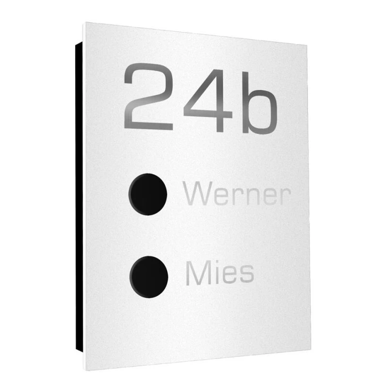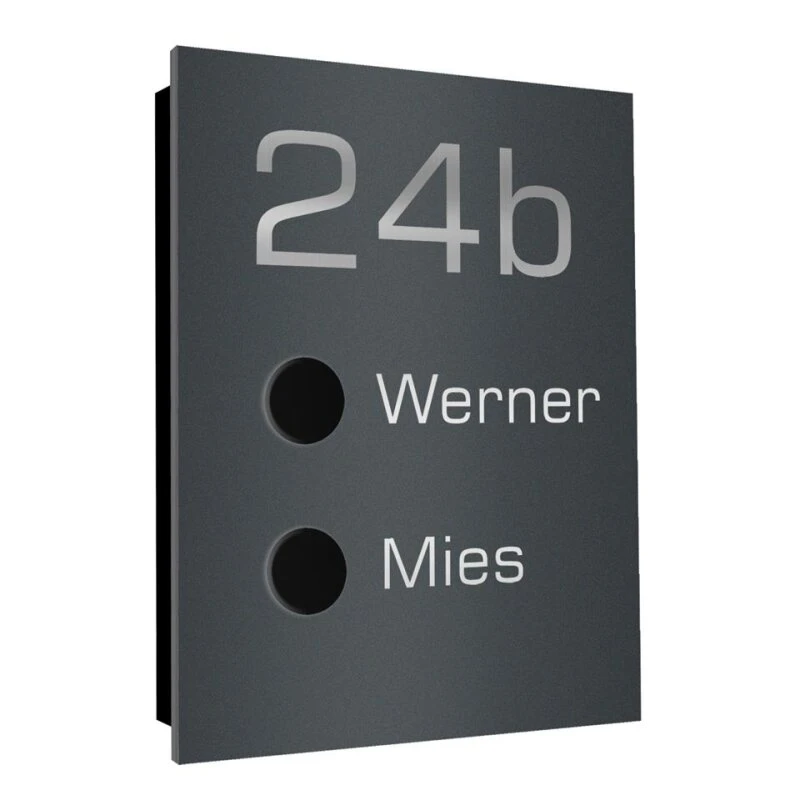 Der Klingelknopf besteht ebenfalls aus schwarzem Acrylglas. Sehr edle Optik.