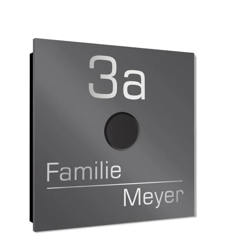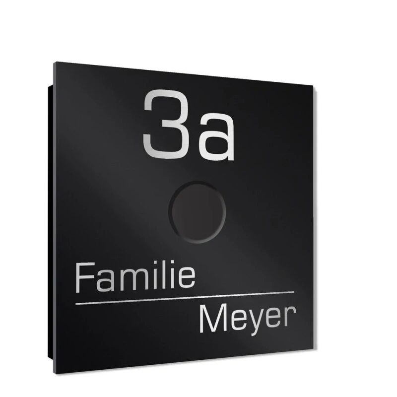 Der Klingelknopf besteht ebenfalls aus schwarzem Acrylglas. Sehr edle Optik.