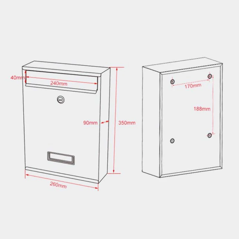 Abmessungen je Kasten: (BxHxT) 26 x 35 x 9cm. Die Briefkästen werden einzeln geliefert.
