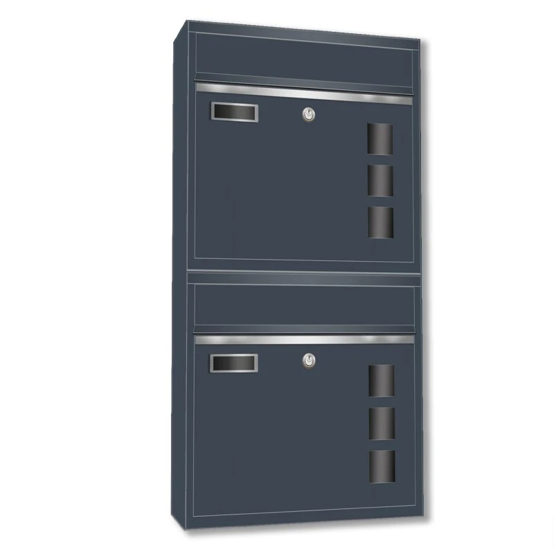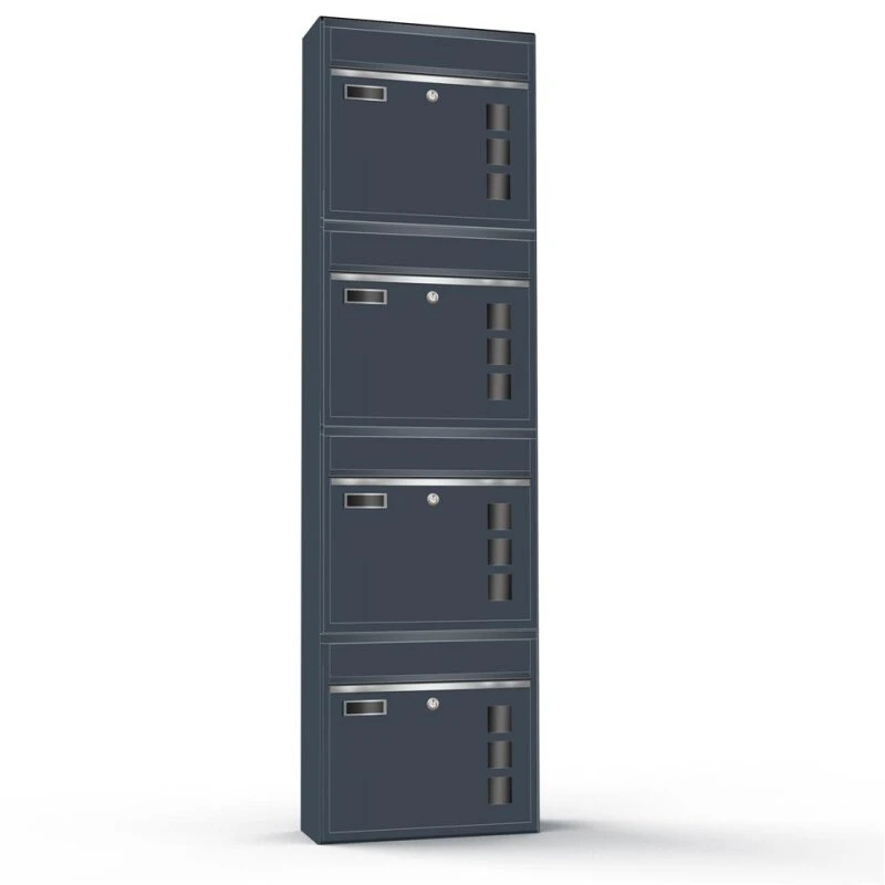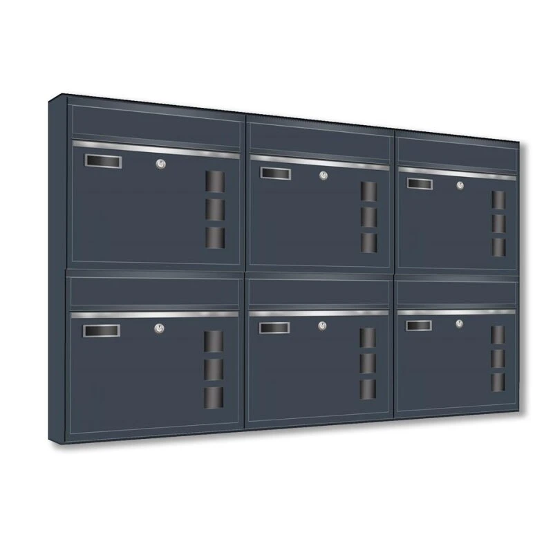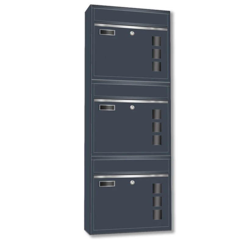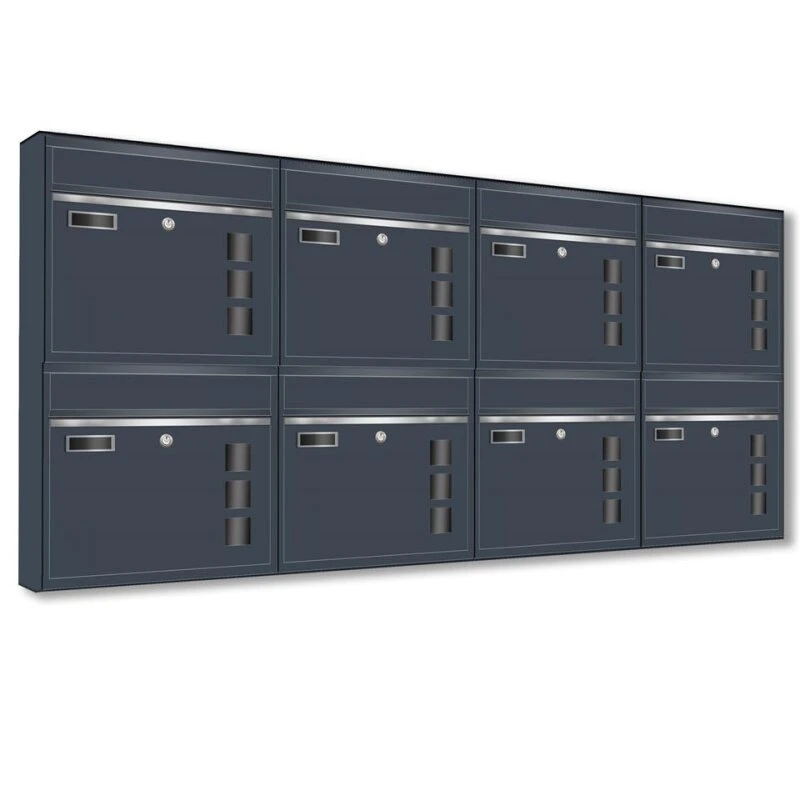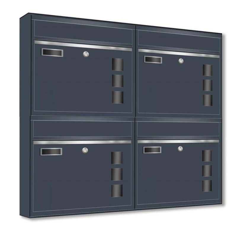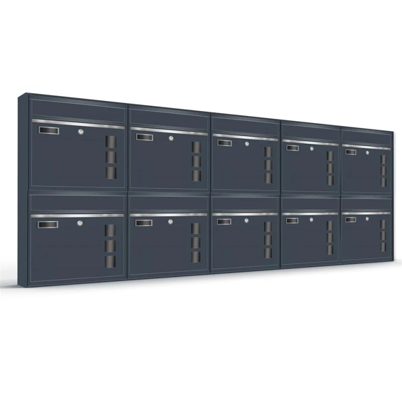 Wandbriefkästen mit Sichtfenster beliebig erweiterbar bis 50 Kästen in RAL 7016 feinstruktur mit Edelstahlblende