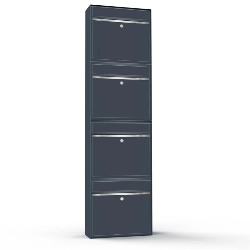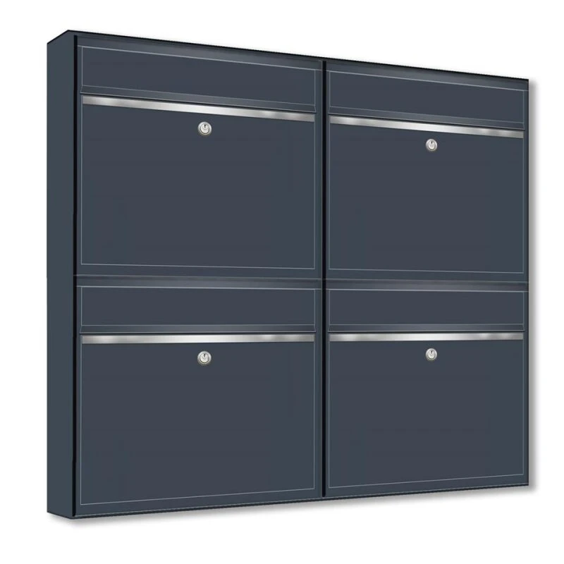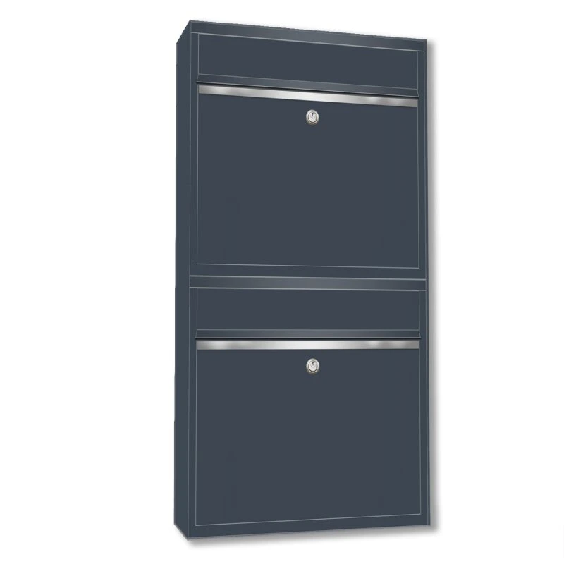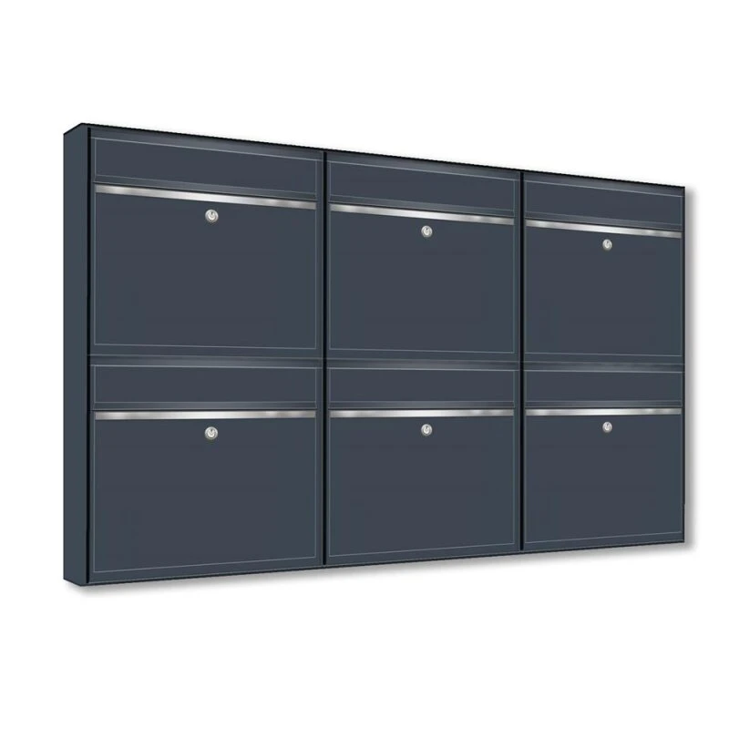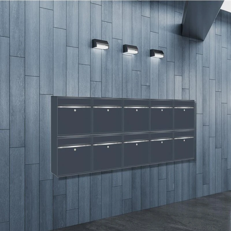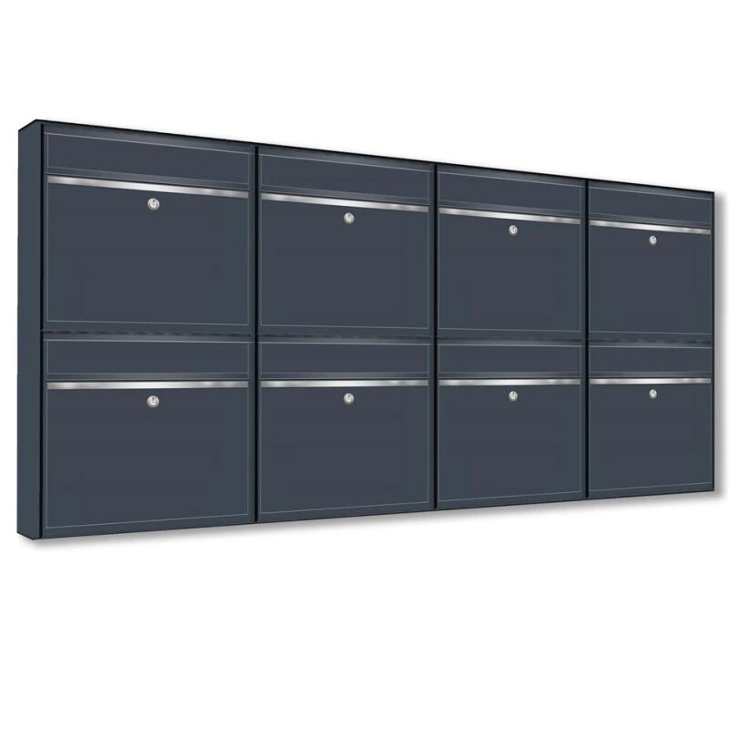 Wandbriefkästen ohne Sichtfenster beliebig erweiterbar bis 50 Kästen in RAL 7016 feinstruktur mit Edelstahlblende