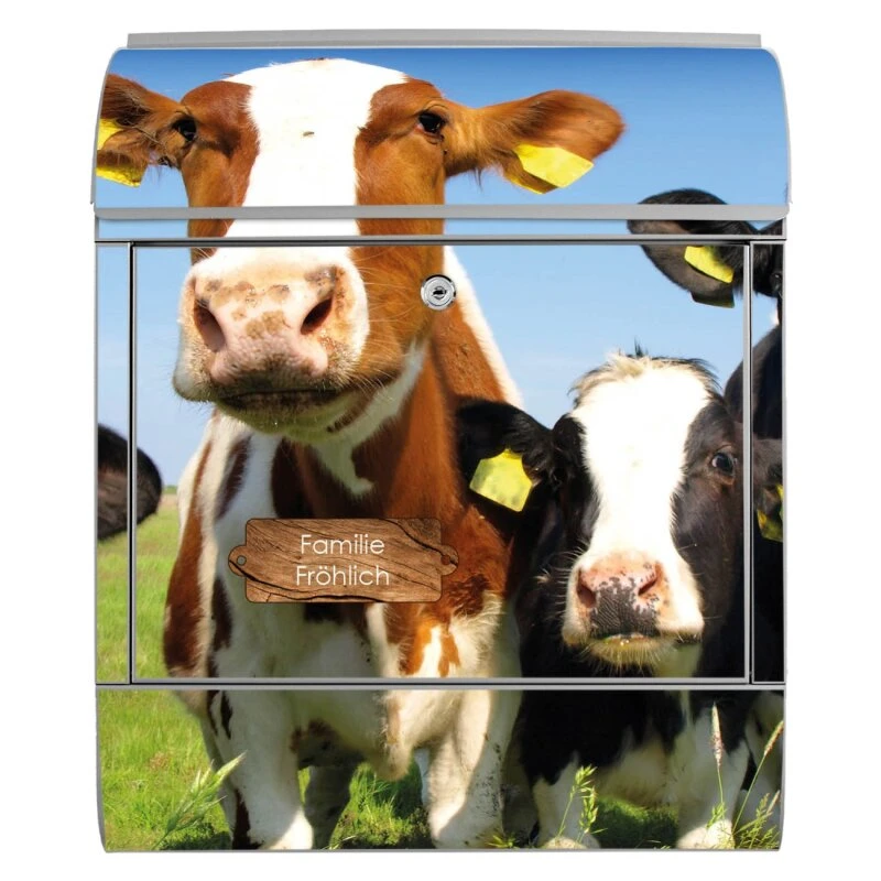 Wandbriefkasten Briefkasten Edelstahl Kühe -Hochwertiger Türklingelladen wandbriefkasten briefkasten edelstahl kuehe2